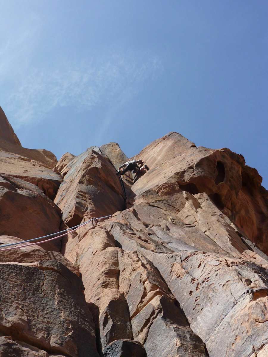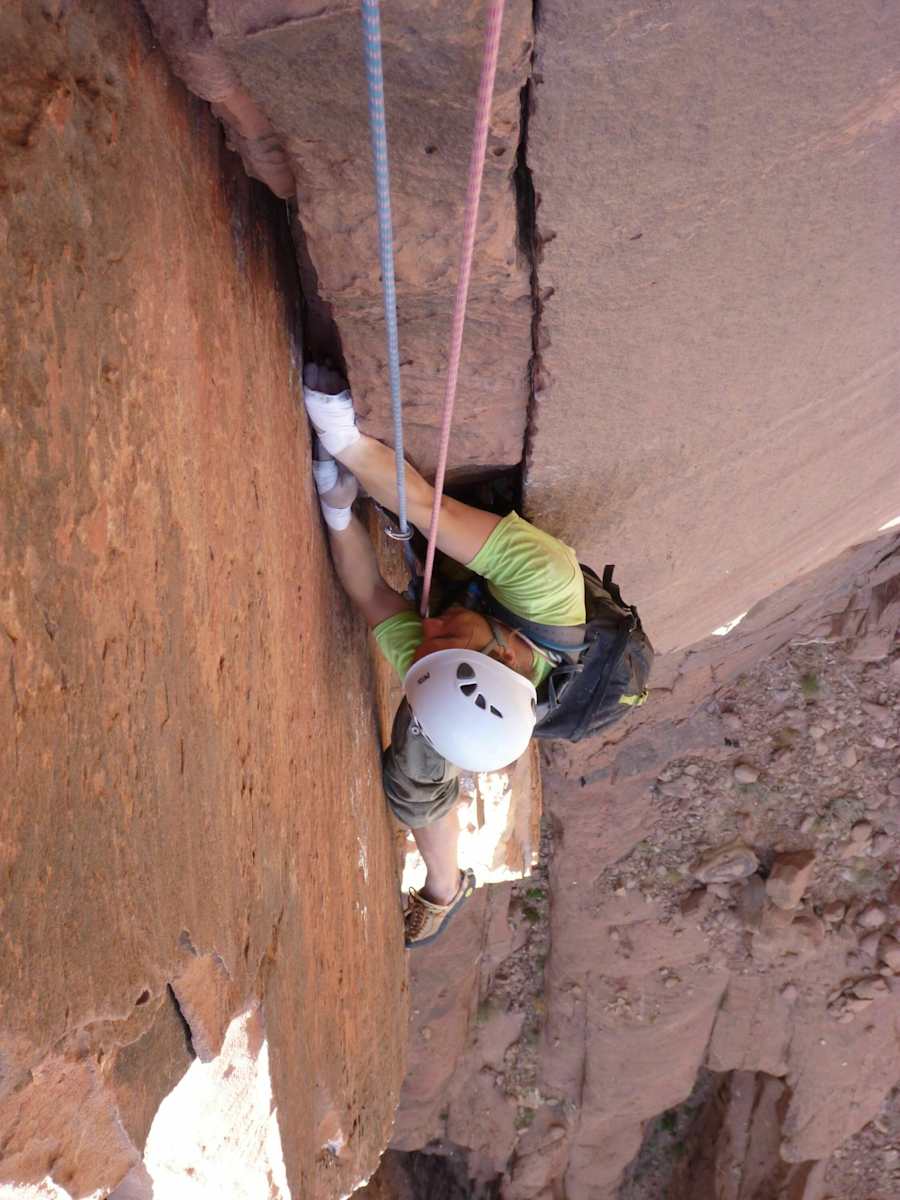 Die fünfte Seillänge (6a) ist erneut ein wunderschöner Riss entlang einer Verschneidung die anschließend in einem Kamin in die sechste Seillänge (6b) übergeht.