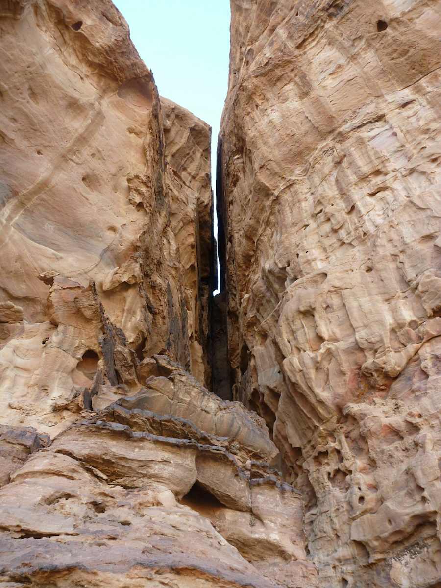 Der Zustieg ist kurz und einfach. In rund 30 Gehminuten in Richtung Westen erreicht man vom „Wadi Rum Village“ aus den Einstieg der Tour. Man sollte sehr früh starten, da sowohl das Klettern als auch der Abstieg viel Zeit in Anspruch nehmen.