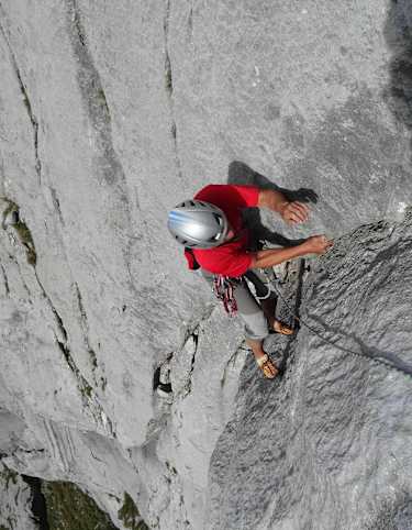 Ausgesetzte Plattenkletterei in der 4. Seillänge. Foto: Benjamin Stern Bildergalerie (6)