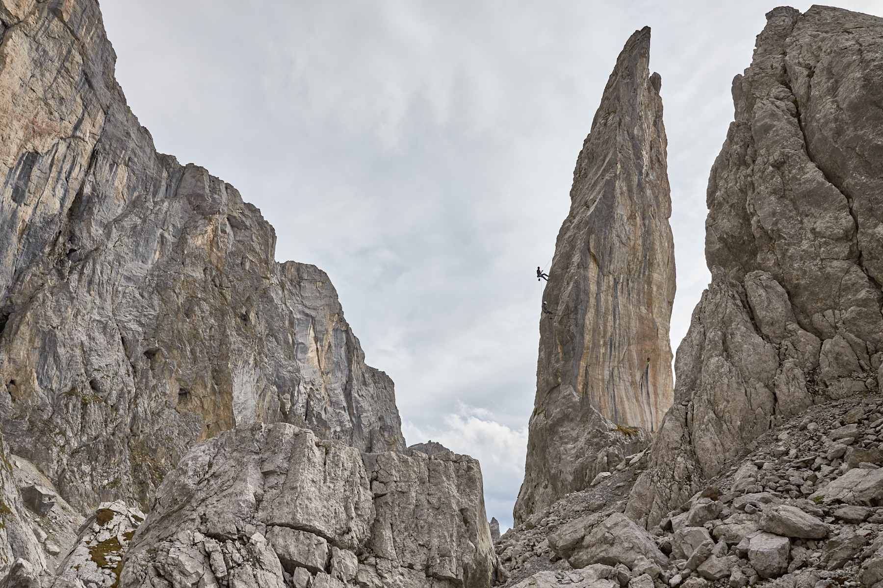 Der Schijenzahn (2.373 m) gehört zu den absoluten Kletterklassikern im Rätikon: ein beeindruckender Gipfel in fantastischer Umgebung und sagenhaften Tiefblicken auf den kristallklaren Partnunsee. 5 Routen im Schwierigkeitsgrad zwischen 5a und 7b gibt es an der eindrücklichen Felsnadel im Graubündner Prättigau zu entdecken. Der feste Kalkstein bietet guten Grip und macht die Kletterei (fast) zum Kinderspiel.