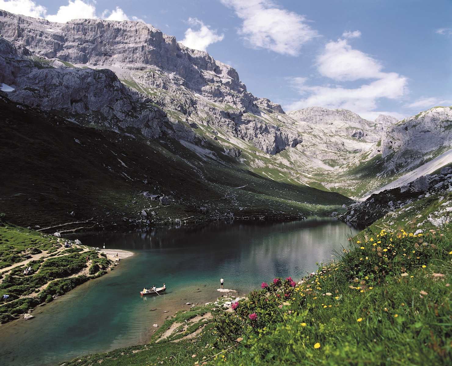 Klettern im schönsten Rätikonkalk kann man im beliebten Kletterrevier Chlei Venedig. Das Gebiet oberhalb des Partnunsees bietet tolle Plaisirrouten für Anfänger bis Fortgeschrittene mit ausgeprägten Wasserrillen. - Ein fantastischer Spot im Graubündner Prättigau.