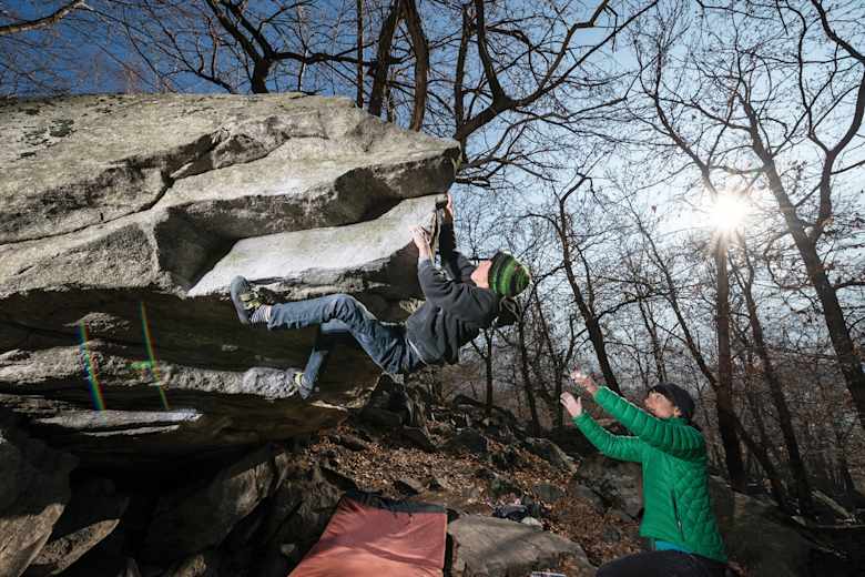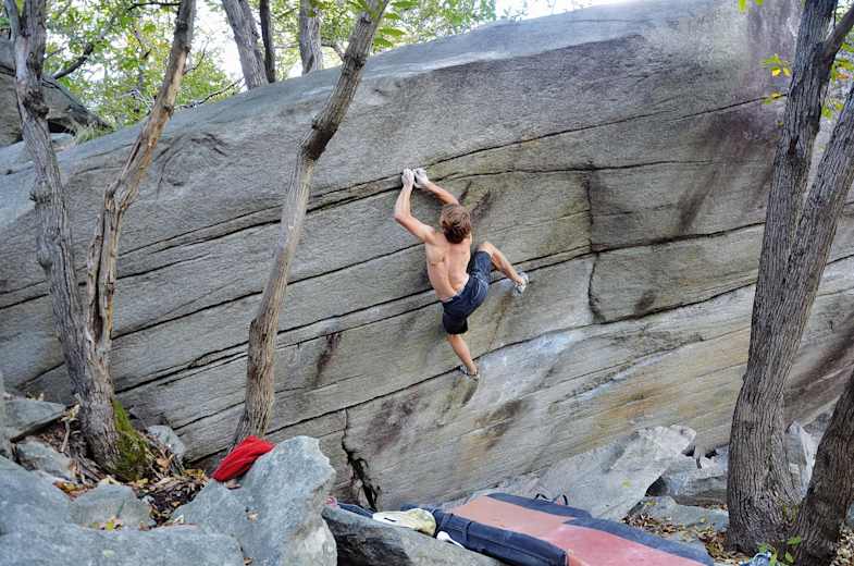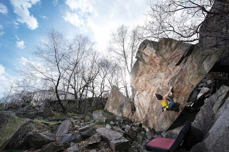 Lieber ein Crashpad mehr mitnehmen, da der Untergrund zum Teil uneben und mit kleinen Felsen gespickt ist.