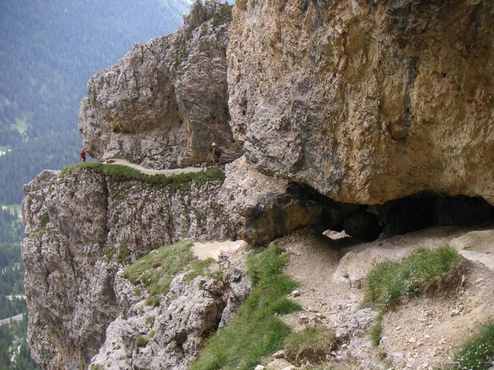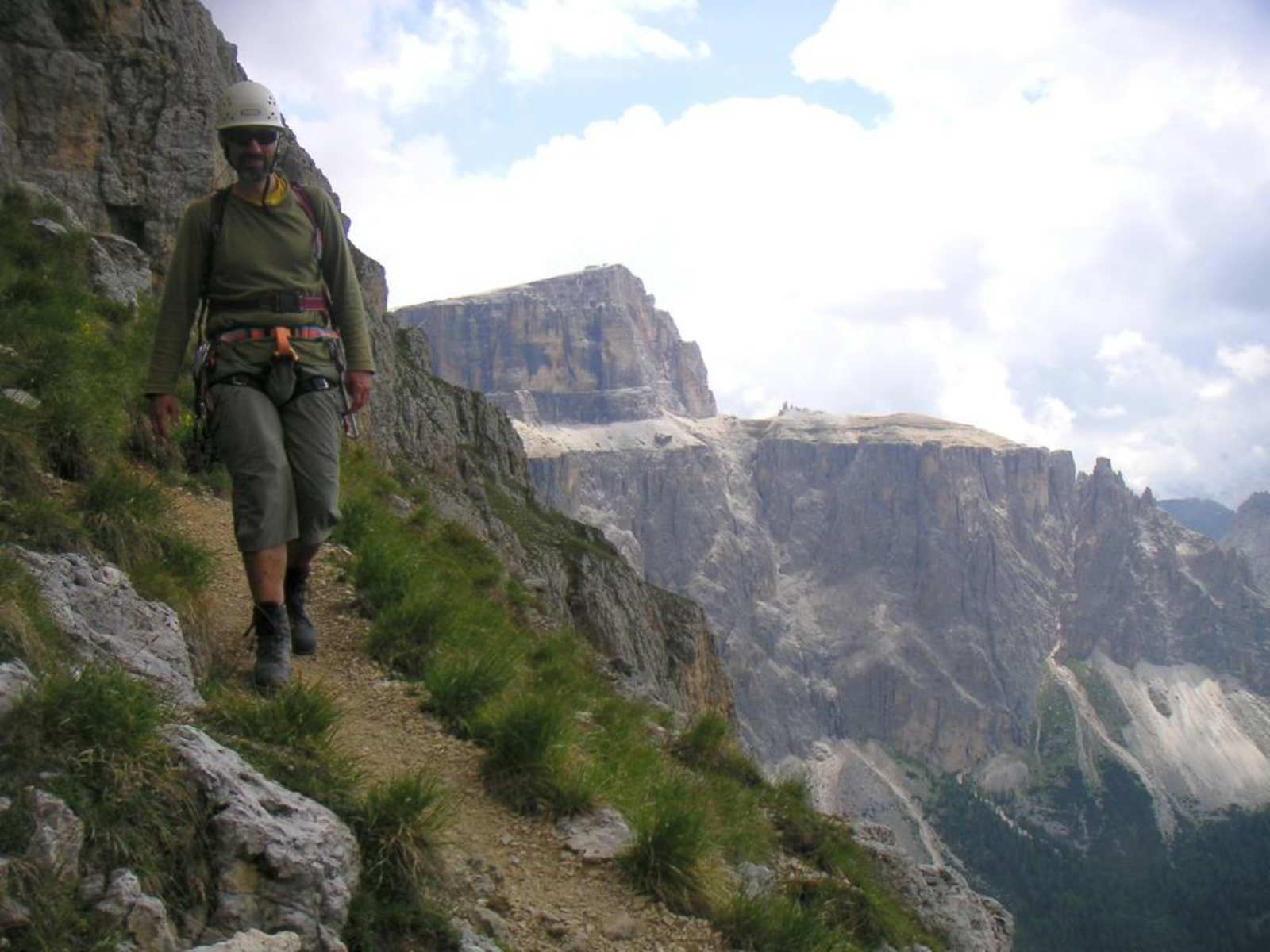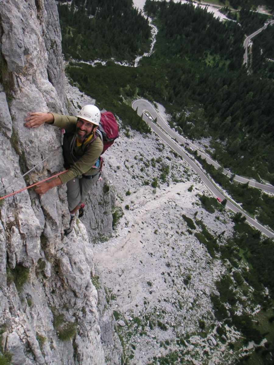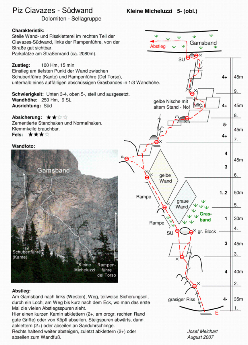 Steile und ausgesetzte Wandkletterei in der Sella Gruppe auf den Piz Ciavazes. Der Zustieg ist kurz und einfach, sodass man sich alsbald an die Kletterlängen machen kann. Die Route endet am „Gamsband“ in der Südwand, welche die gesamte Wand in der Hälfte durchzieht. Von hier hat man auch einen tollen Ausblick nach Süden in die Berge der Region Val di Fassa inmitten der Dolomiten.