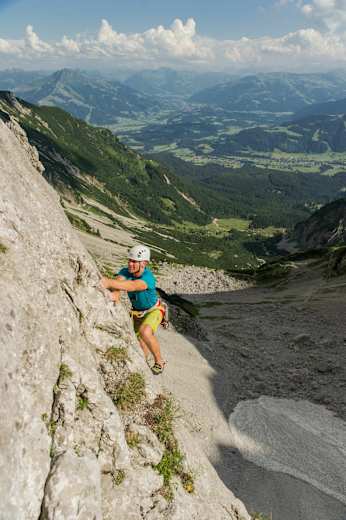 Auch wenn die Tour gut abgesichert ist, so handelt es sich doch um eine Tour mit alpinem Charakter - es ist keine Plaisirkletterei.