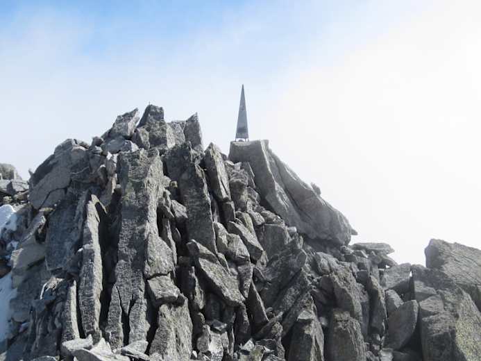 Früh am Morgen startet man auf dem schön angelegten Weg gemäßigt aufwärts in südlicher Richtung. Auf ca. 2.250 m verlässt man den markierten Steig und geht immer westlich (rechts) des Gratrücken weiter. Über Platten, die bei Nässe und Altschnee heikel sein können, orientiert man sich immer gerade auf die Nordkante zu.