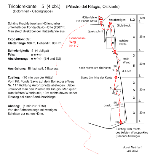 Route: 100 m / 80 Hm / 5 kurze Seillängen, 1:15 h