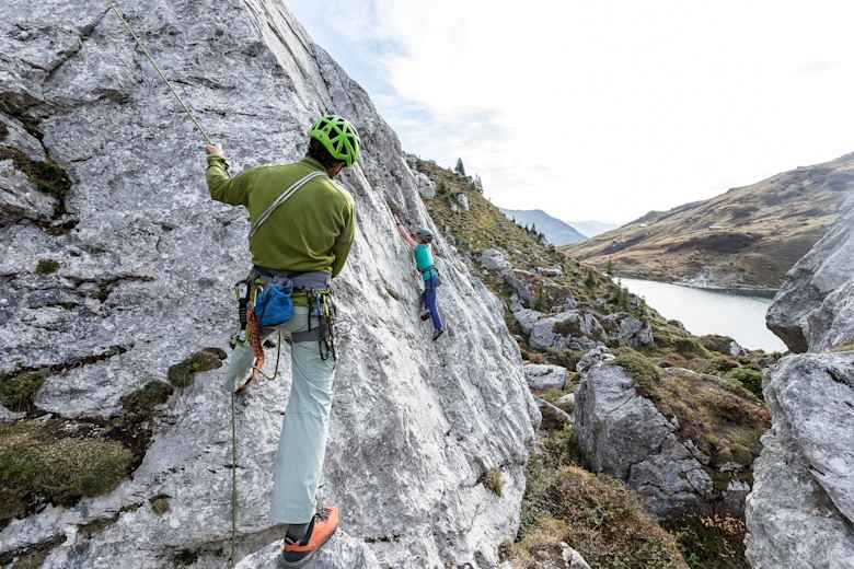 Leicht erreichbar, schön gelegen und mit Klettereien von leicht bis knifflig. Damit überzeugt der Familienklettergarten Partnunsee im Rätikon sowohl für Familien und SportklettererInnen, welche erste Versuche am Naturfels machen. Direkt hinter dem Partnunsee gelegen bietet er ein leicht erreichbares Ziel. Mit den Feuerstellen, den Ruderboote und den Trottinetts für den Rückweg ist ein abwechslungsreiches Tagesprogramm garantiert.