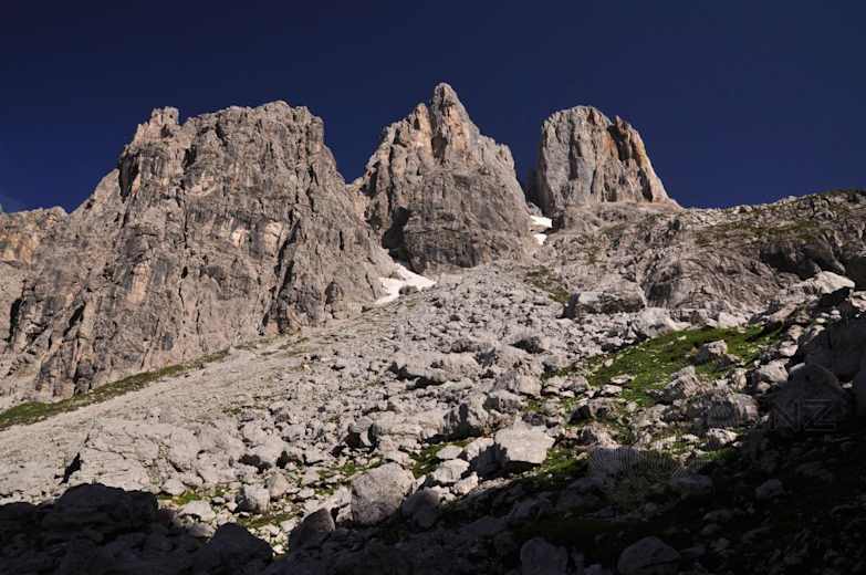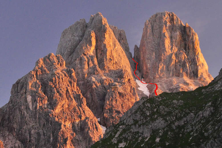 Die ersten Sonnenstrahlen in den steilen Flanken der BischofsmützeFoto: Mario Penz