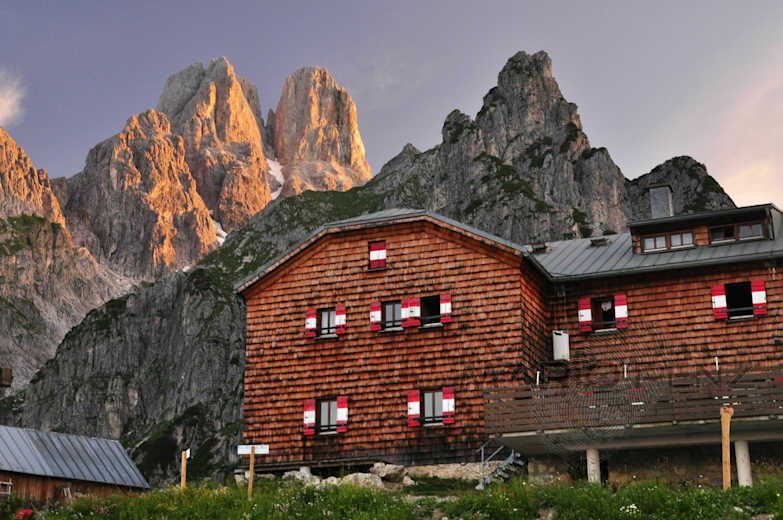 Topos zu diesen und anderen teils sehr anspruchsvollen alpinen Kletterrouten sind im Kletterführer Hofpürglhütte enthalten, der in der Hütte aufliegt.