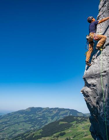 Die Holzegg punktet mit einem kurzem Zustieg, mit der windgeschützten Südlage und vielen lohnenden einfacheren Routen. Etwas weiter oben, direkt am Mythenweg gelegen, bietet der Sektor Züri Süd steile Kletterei zwischen 6b und 7a+. Die Bewunderung der Mythenwanderer ist einem sicher.