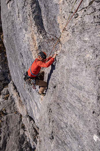 Der horizontal geschichtete Fels ist vorwiegend fest und strukturiert, die Absicherung gut und die Kletterei sehr vielfältig. Dank der windgeschützten Südlage ist man hier manchmal noch im November mit dem T-Shirt unterwegs.