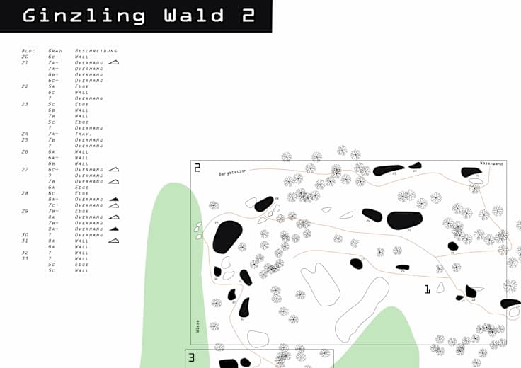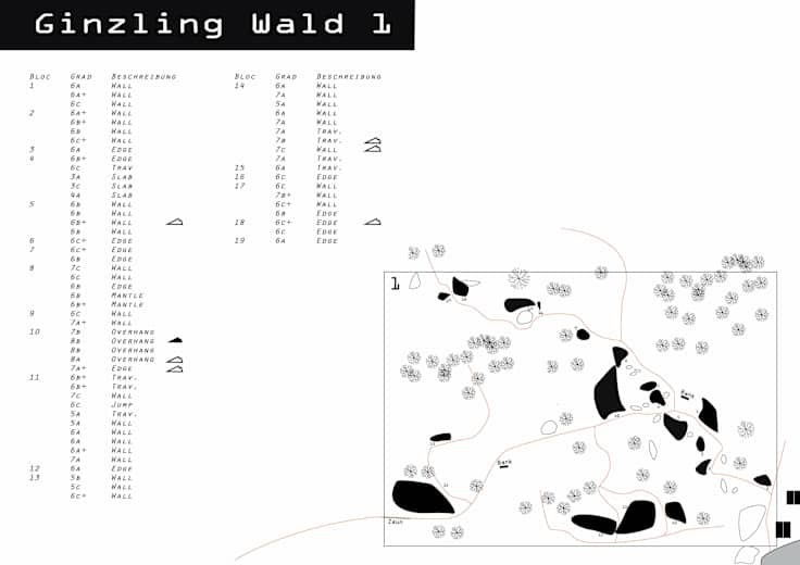 Die Schwierigkeit der Boulder liegt im Bereich 3c bis 8b+ - Traversen, Highboulds, Platten und vieles mehr sind dort zu finden.
