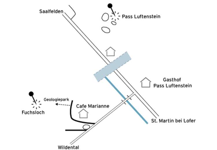 Gegenüber vom Gasthof Paß Luftenstein von Lofer kommend links neben der Bundesstraße parken.