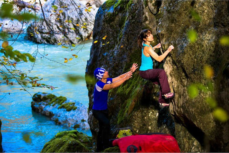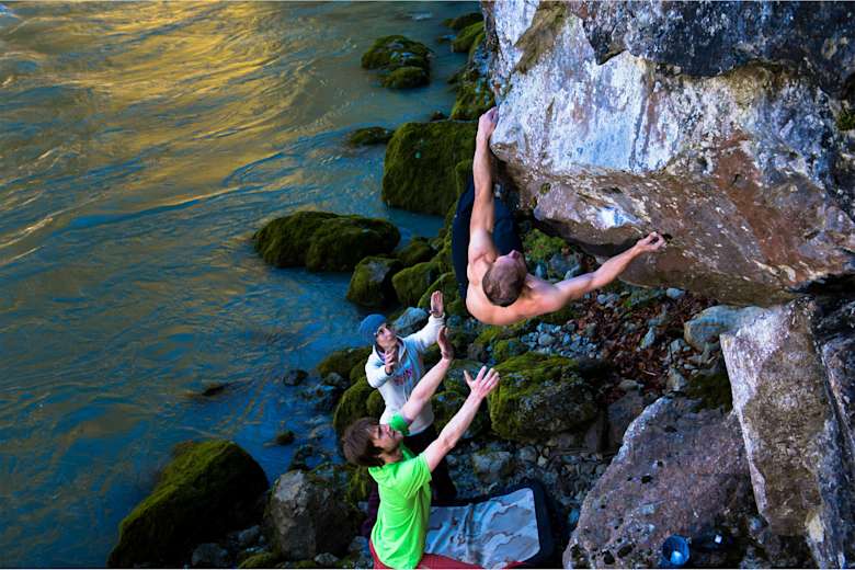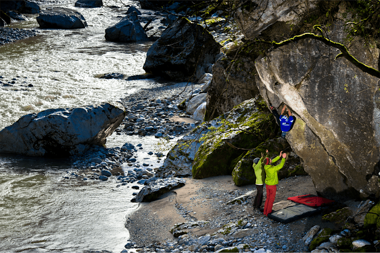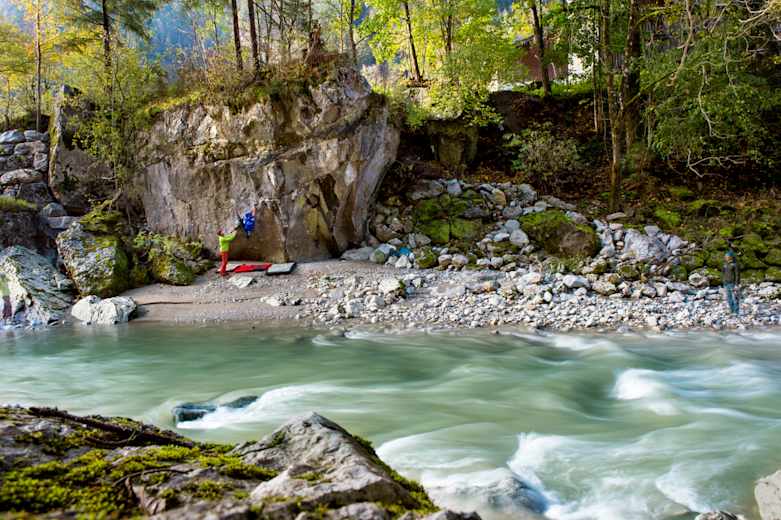 In den Bouldergebieten Fuchsloch und Bach bouldert es sich dank der kühlen Saalach selbst im Sommer hervorragend Foto: Claudia Ziegler