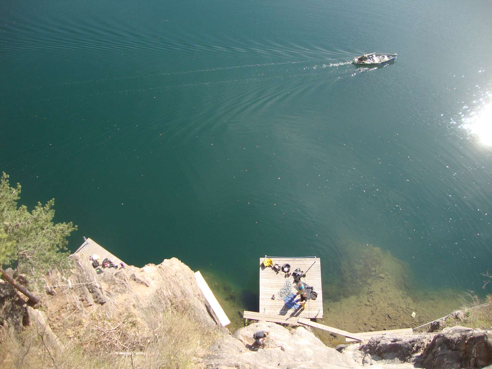 Die Klettertouren sind für Kinder nur bedingt geeignet - im Gegensatz zur Badegelegenheit direkt an den hölzernen Sicherungs-Plattformen, von denen man ins Wasser springen kann. Allerdings reicht der Platz nicht für Handtuch und Sonnenschirm, da es sich nicht um einen normalen Badeplatz handelt.