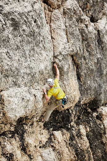 Für klassische Touren in den Dolomiten empfiehlt es sich einen Satz mittlerer Friends, Klemmkeile, verlängerbare Express-Schlingen und Bandschlingen für Standplatzbau und als Sicherungsmittel mitzunehmen.