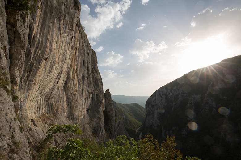 Der Tijesno Canyon befindet sich 12km südlich von Banja Luka, der zweitgrößten Stadt Bosnien-Herzegowinas. Aus der pannonischen Tiefebene kommend, steilt es sich überraschend zu beiden Seiten des Vrbas-Fluss (Wildwasser 2, Rafting WM 2010) 400m auf. Die Schlucht ist durchzogen von einer Vielzahl an Felsgraten zwischen denen sich bis zu 300m hohe Felswände aufspannen. Die Kletterei ist sehr vielseitig von perfektem Plattenpanzer bis stark überhängend, stark versintert und leistig-kleingriffig, der Fels extrem rau. Derzeit existieren 75 Seillängen zwischen 3 und 9a mit Routenlängen von 20 bis 200m. Es überwiegen sehr gut abgesicherte Mehrseillängen, der Sektor Amfiteatar hat Klettergartencharakter. Man erreicht das Klettergebiet am einfachsten durch 15-minutigen Zustieg von oberhalb.