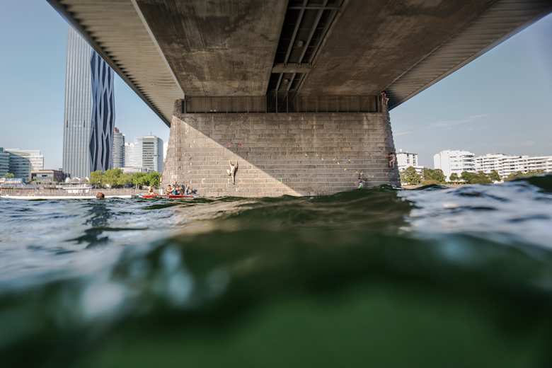 Es gibt zwei Reichsbrückenpfeiler in der Neuen Donau (keine Strömung), aber auch einen Pfeiler in der fließenden Donau. Hier auf keinen Fall bouldern! Neben der Strömung gibt es regen Schiffsverkehr! Bei der Neuen Donau neben der Copa Kagrana ist es sowieso viel gemütlicher.