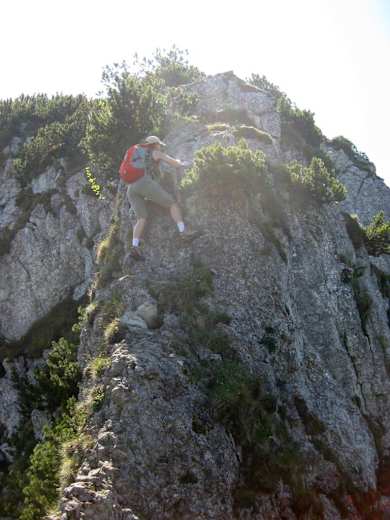 Von der Scharte am Ende der Grünen Gasse über ein kurzes, steiles und ausgesetztes Gratstück zum Gipfel.