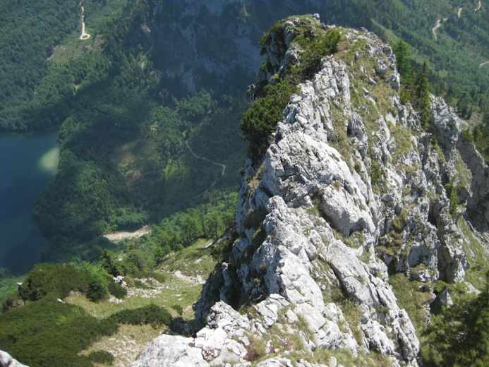 Diese Alpinkletter-Tour in den Oberösterreichischen Voralpen ist wie gemacht für Alpinisten, die gerne seilfrei kraxeln. Der stille, nicht markiert Anstieg führt östlich vom Traunsee über steile Graspassagen und einen ausgesetzten Grad. Da bei nassen Bedingungen Absturzgefahrt besteht, sollte man die Tour nur bei Trockenheit begehen.