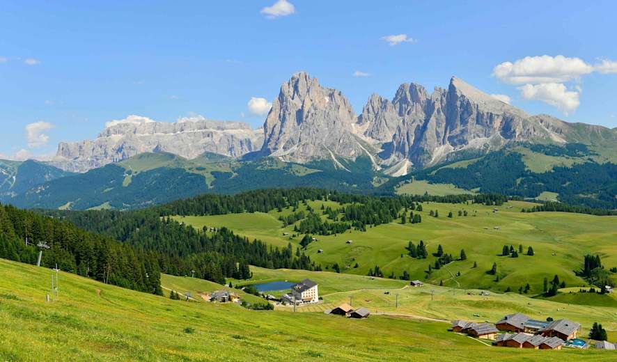Auf der SS242 hinauf bis zum Sella Joch und mit der Bahn weiter bis zur Toni-Demetz Hütte