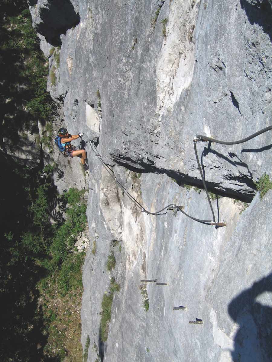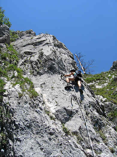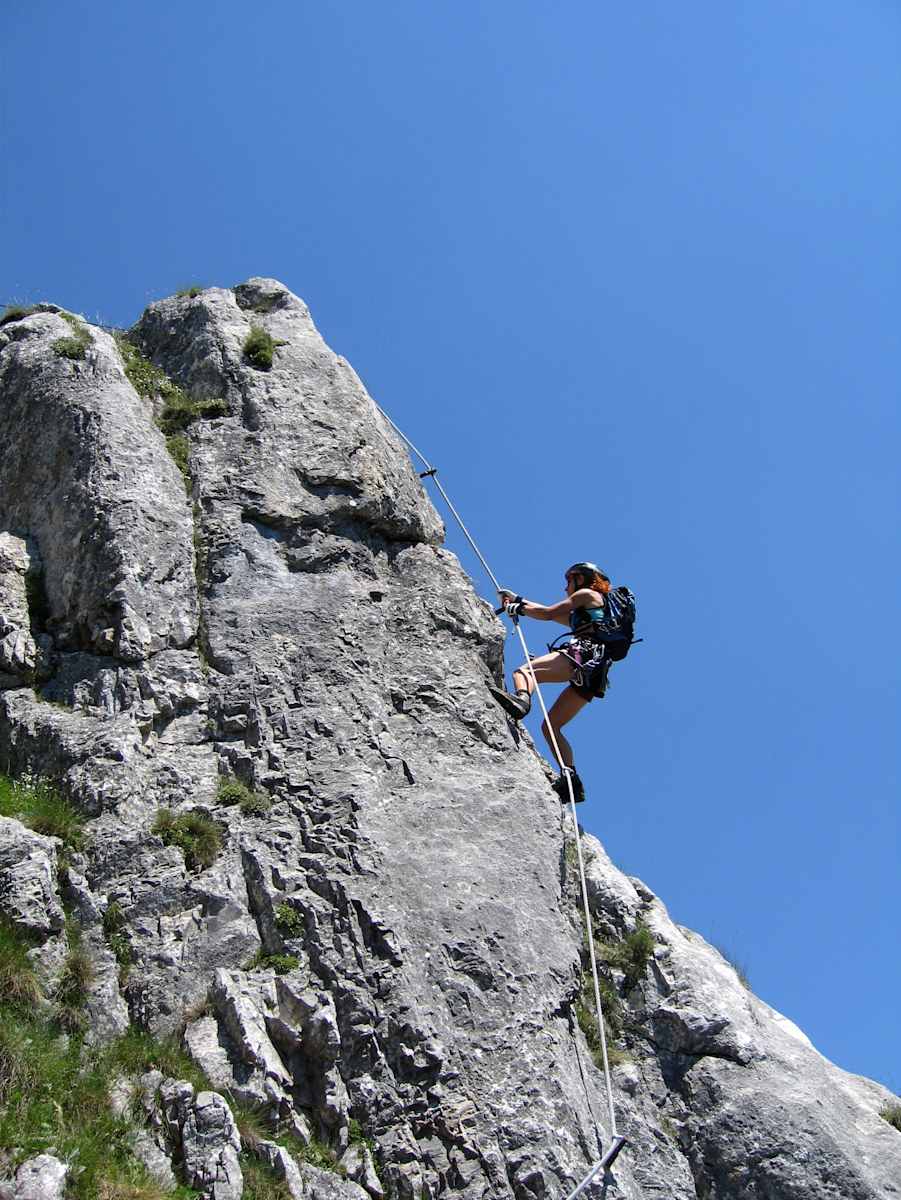 Sollten schon in der Einstiegswand Probleme auftreten, ist von der weiteren Begehung des Steiges dringend abzuraten!