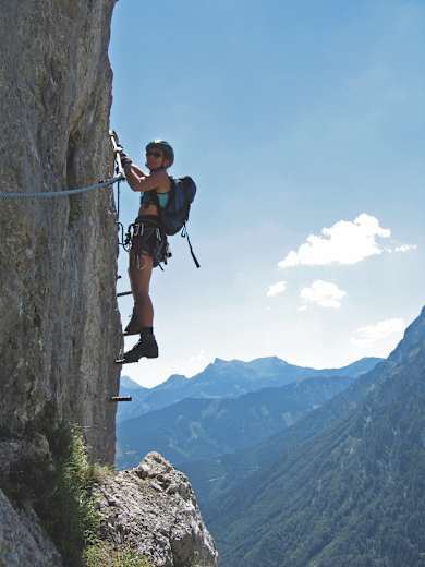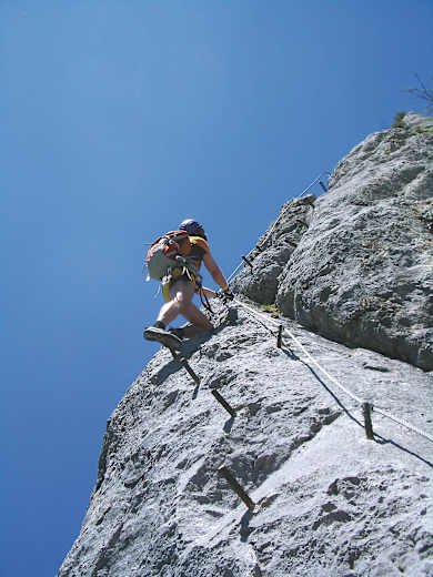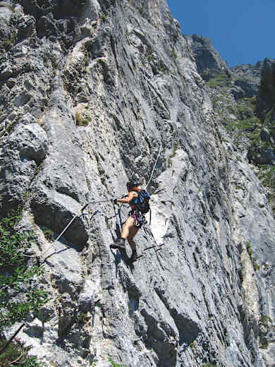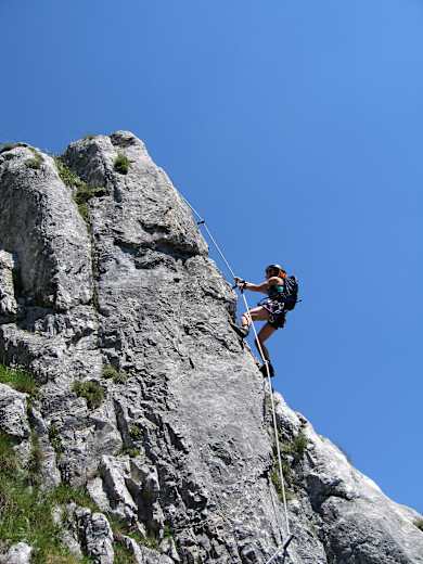 Ausrüstung: Klettersteigset, Helm, mittelfeste Bergschuhe od. Kletterschuhe