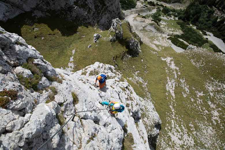 Ausrüstung: Klettersteigset, Helm, mittelfeste Bergschuhe od. Kletterschuhe