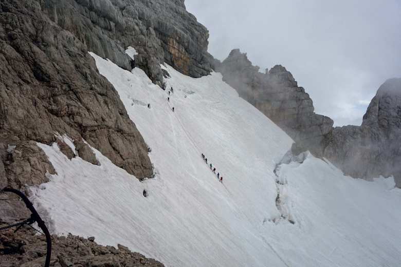 Der Randkluftsteig ist der leichteste Anstieg auf den Hohen Dachstein und dank der bequemen Aufstiegshilfe mit der Dachstein-Gletscherbahn in ca. 1 Std. von der Bergstation erreichbar.