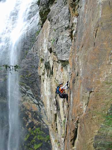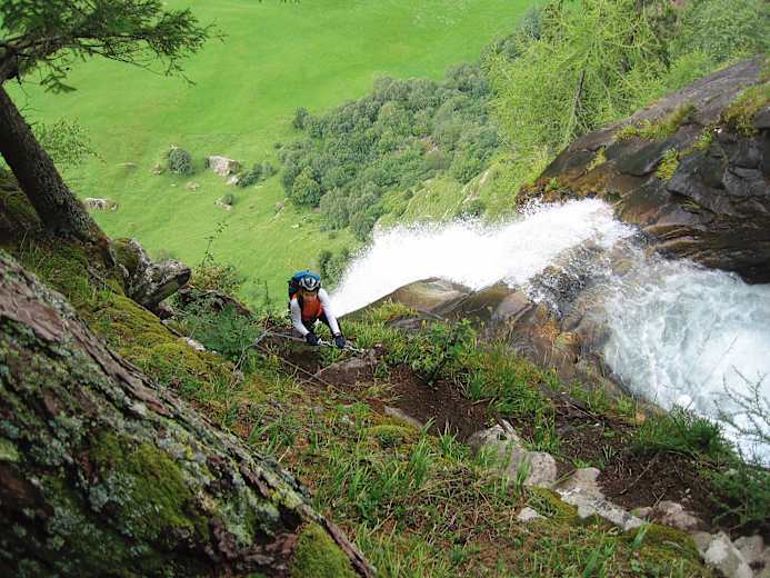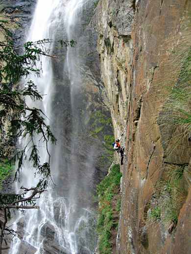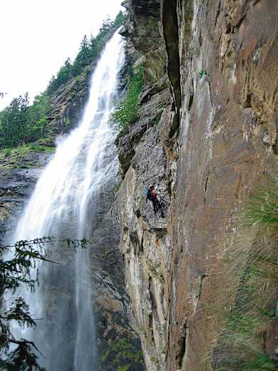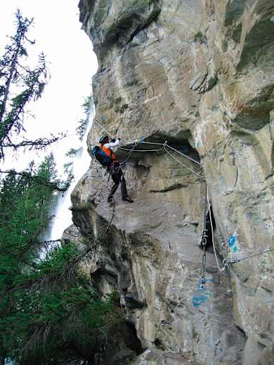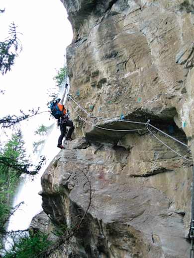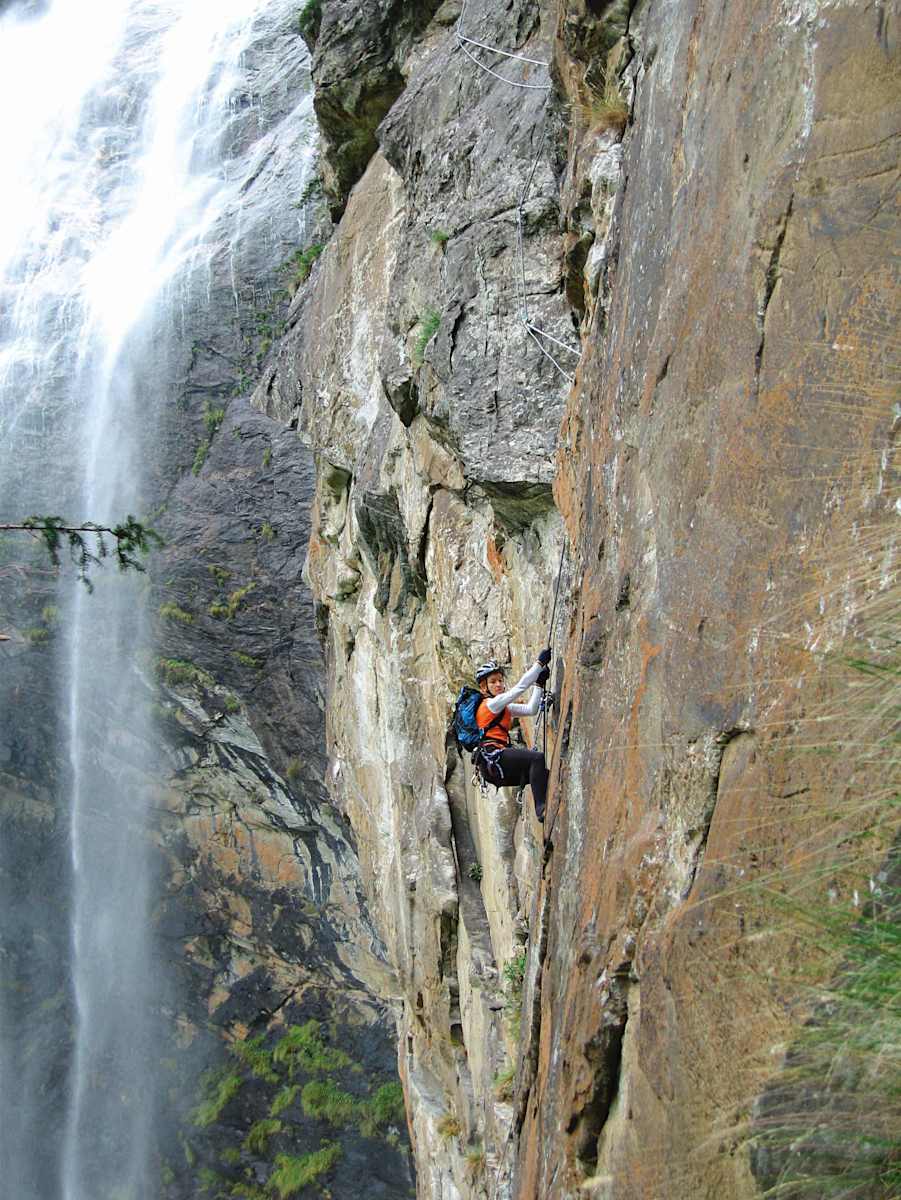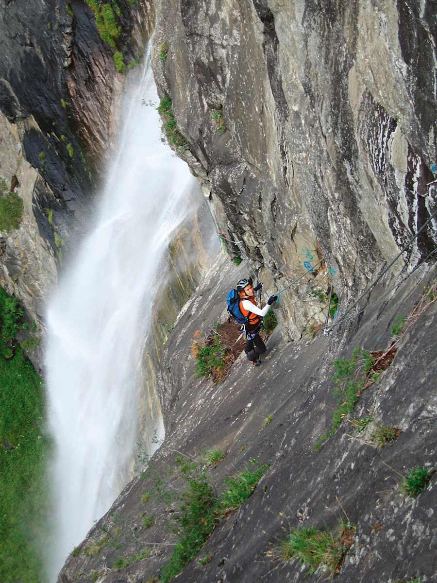 Großartiger, abenteuerlicher und sehr anspruchsvoller Sportklettersteig im Nahbereich des höchsten Wasserfalls von Kärnten im Bergsteigerdorf Malta. An Ausgesetztheit, sportlich-kraftraubender Wegführung und eindrucksvoller Wasserfall-Kulisse kaum mehr zu überbieten!