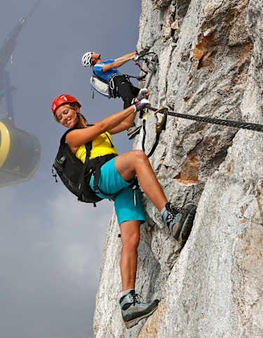 Ausrüstung: Klettersteigset, Helm, mittelfeste Bergschuhe od. Kletterschuhe