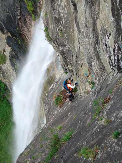 Fallbach Klettersteig - direkt neben dem Wasserfall Foto: Kurt Schall, www.schall-verlag.at