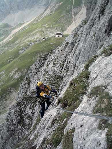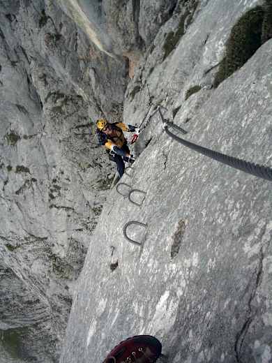Ausrüstung: Klettersteigset, Helm, mittelfeste Bergschuhe od. Kletterschuhe