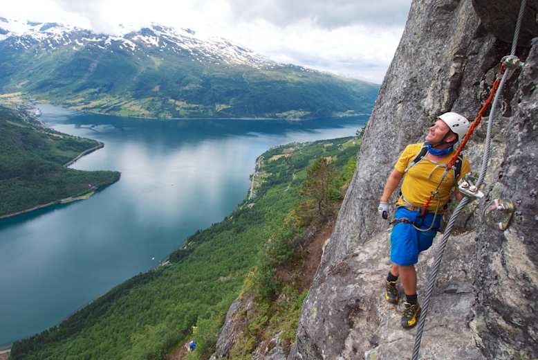 Klettersteig mit Fjord-Blick: Da muss man einfach glücklich sein Foto: Simon Schöpf