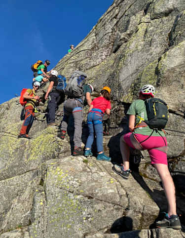 Die Route hinauf zum Gipfel (2.160 m) ist von Beginn an schwierig und beinhaltet immer wieder sehr fordernde und kraftrauende Kletterstellen (C/D). Für den Klettersteig selbst wird man zwischen 2 und 3 Stunden brauchen. Die Exposition ist Süd - im Sommer kann es ziemlich warm werden.