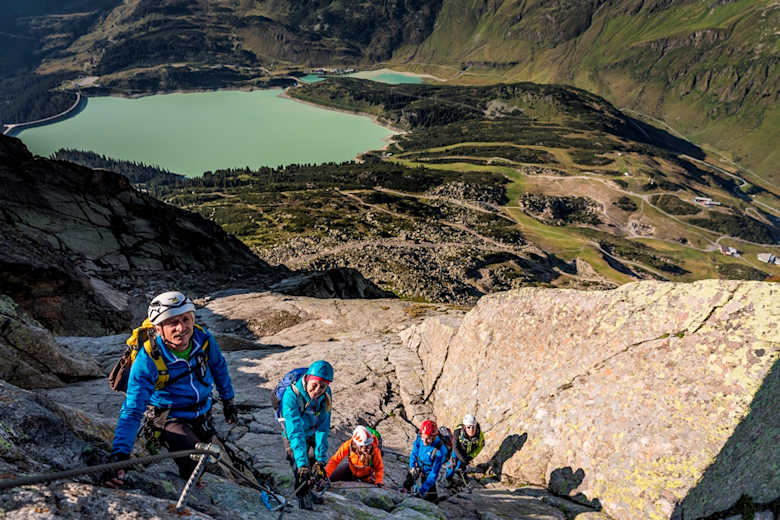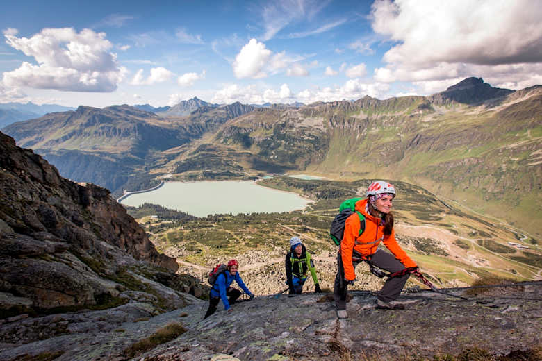 Der alpine Silvapark Klettersteig befindet sich in der Nordwand der Ballunspitze zwischen dem Tiroler Paznaun und dem Vorarlberger Montafon. Vom 2.671 m hohen Gipfel bietet sich ein sagenhafter Ausblick auf die Bergwelt der Silvretta und des Rätikons sowie auf den wie ein Juwel schimmernden Kops-Speichersee unten im Tal.