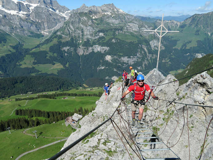 Der Klettersteig auf dem Rigidalstockgrat führt auf einen der beliebtesten Gipfel in der Region Engelberg. Der Rigidalstock (2.593 m) im Grenzgebiet der Kantone Obwalden und Nidwalden bietet nicht nur traumhafte Ausblicke auf die Berner und Urner Alpen, man überblickt auch zahlreiche glasklare Bergseen wie z.B. den Trübsee und den Bannalpsee.
