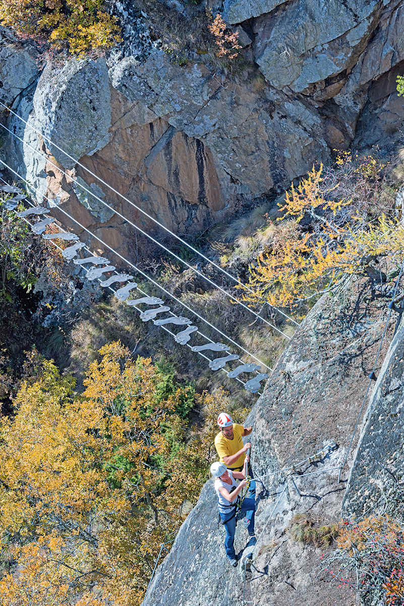 Route Affele – 50 m Stahlseil – eine Leiter – Schwierigkeit A – B – C/D