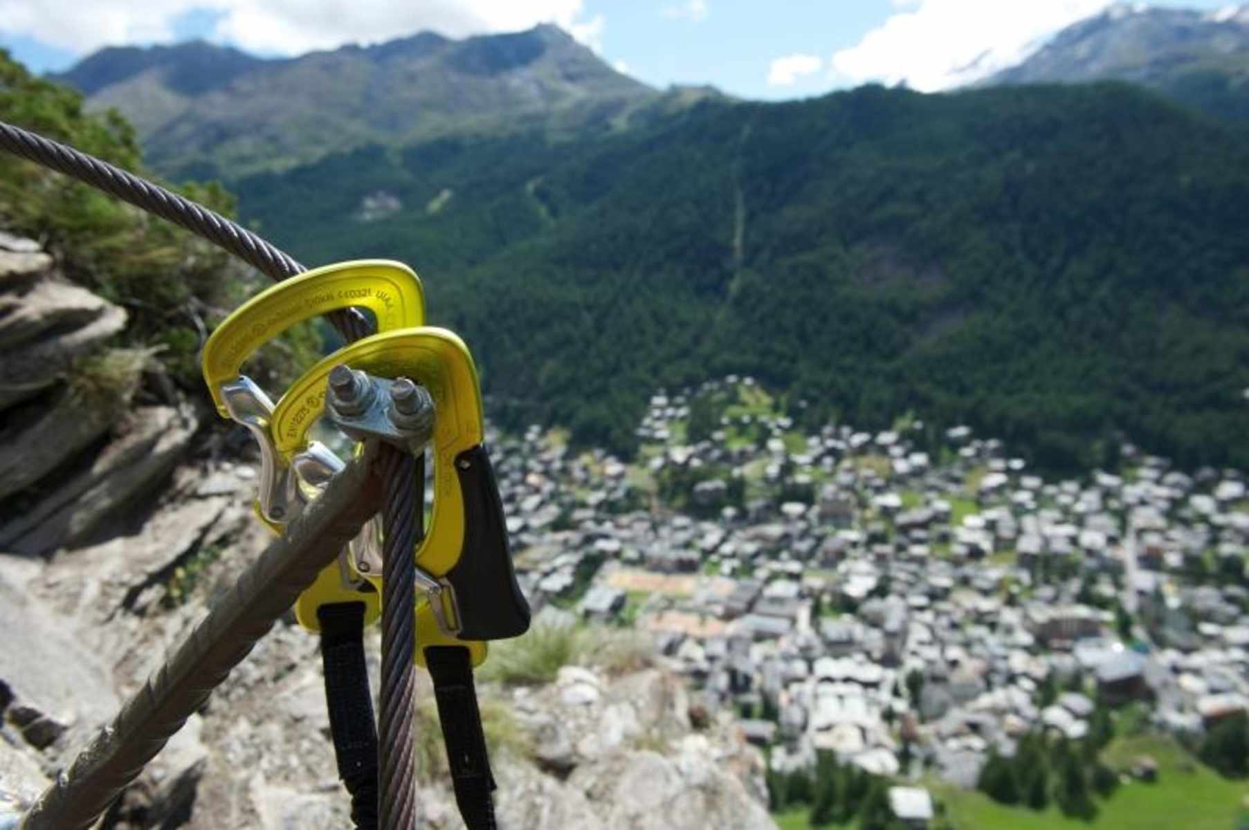 Der Klettersteig Schweifinen über den Dächern von Zermatt Foto: Zermatt Tourismus - Michael Portmann