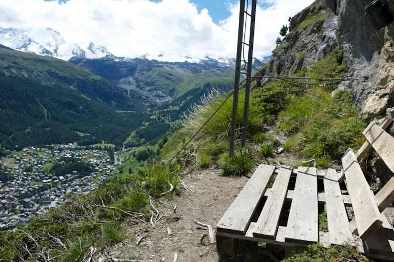 Der Klettersteig Schweifinen im Kanton Wallis führt hoch über die Dächer von Zermatt und bietet traumhafte Aussichten auf die umliegenden Gipfel der Walliser Alpen. Die drei Abschnitte A, B und C verlangen unterschiedliches Können.