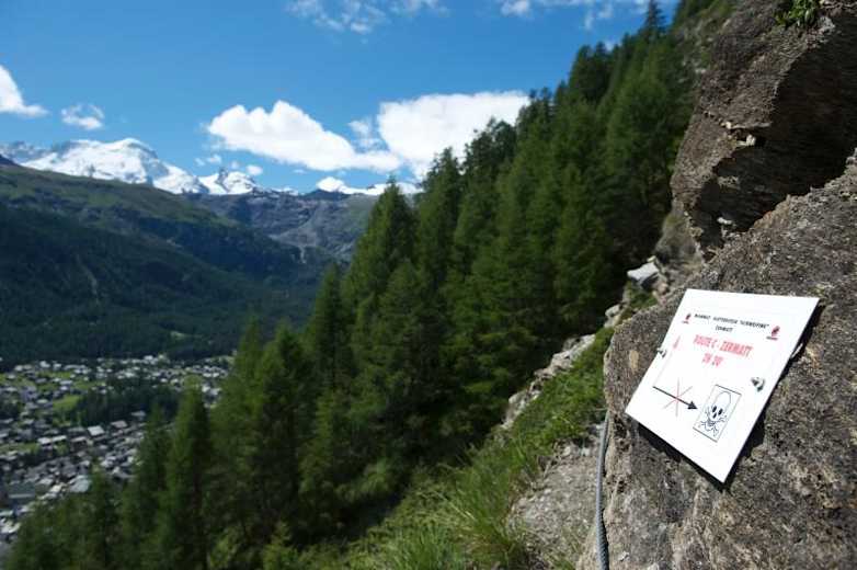 Wer Lust hat, an den Klettersteig noch eine schöne Wanderung zu hängen, der steigt nicht direkt ab, sondern folgt dem Wanderweg oberhalb der Trifthütte und gelangt schliesslich über die Hohbalmenstafel, den Hubel und Hubelwäng nach Zmutt und von dort über Furi zurück nach Zermatt.