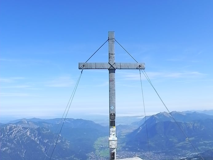 Über ein Geröllfeld erreicht man den Einstieg. Über erste Versicherungen erreicht man eine Einschartung. Man folgt dem Grat aufwärts bis der Steig nach rechts in die Flanke zieht. Über eine Leiter und weitere versicherte Passagen erreicht man das Gipfelkreuz auf der Alpspitze, das einen tollen Tiefblick auf Garmisch-Partenkirchen bietet.