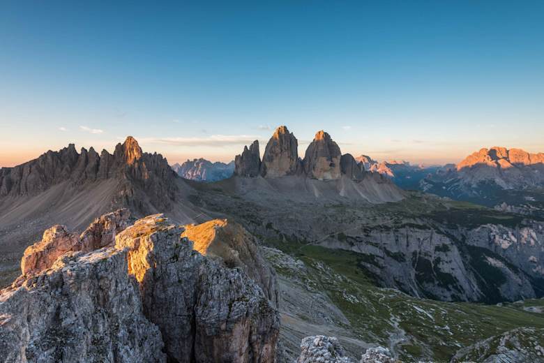 Wer auf der Auronzohütte oder auf der Lavaredohütte genächtigt hat, muss ein wenig mehr Zeit für diese Etappe einplanen. Schließlich muss man erst zur Drei-Zinnen-Hütte zusteigen.
