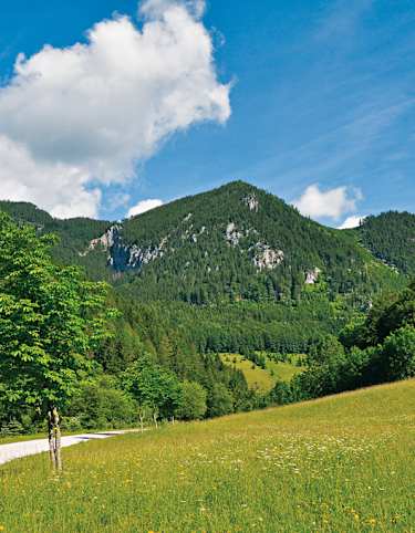 b) Über den Preinerwandsteig (einige Sicherungen A und A/B, Trittsicherheit, Abzweigung nordöstlich des Preinerwand-Gipfels) zum „Bachinger Bründl“.
