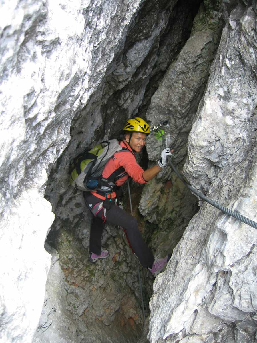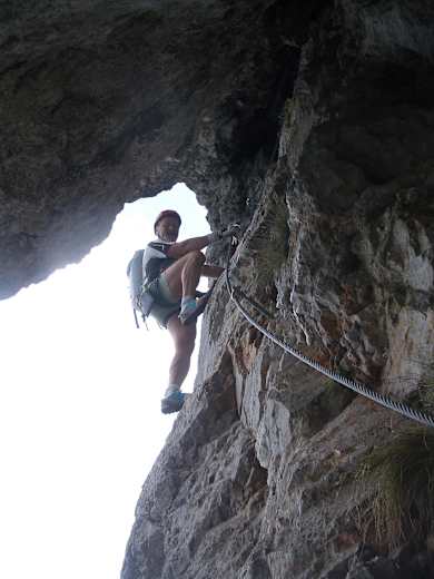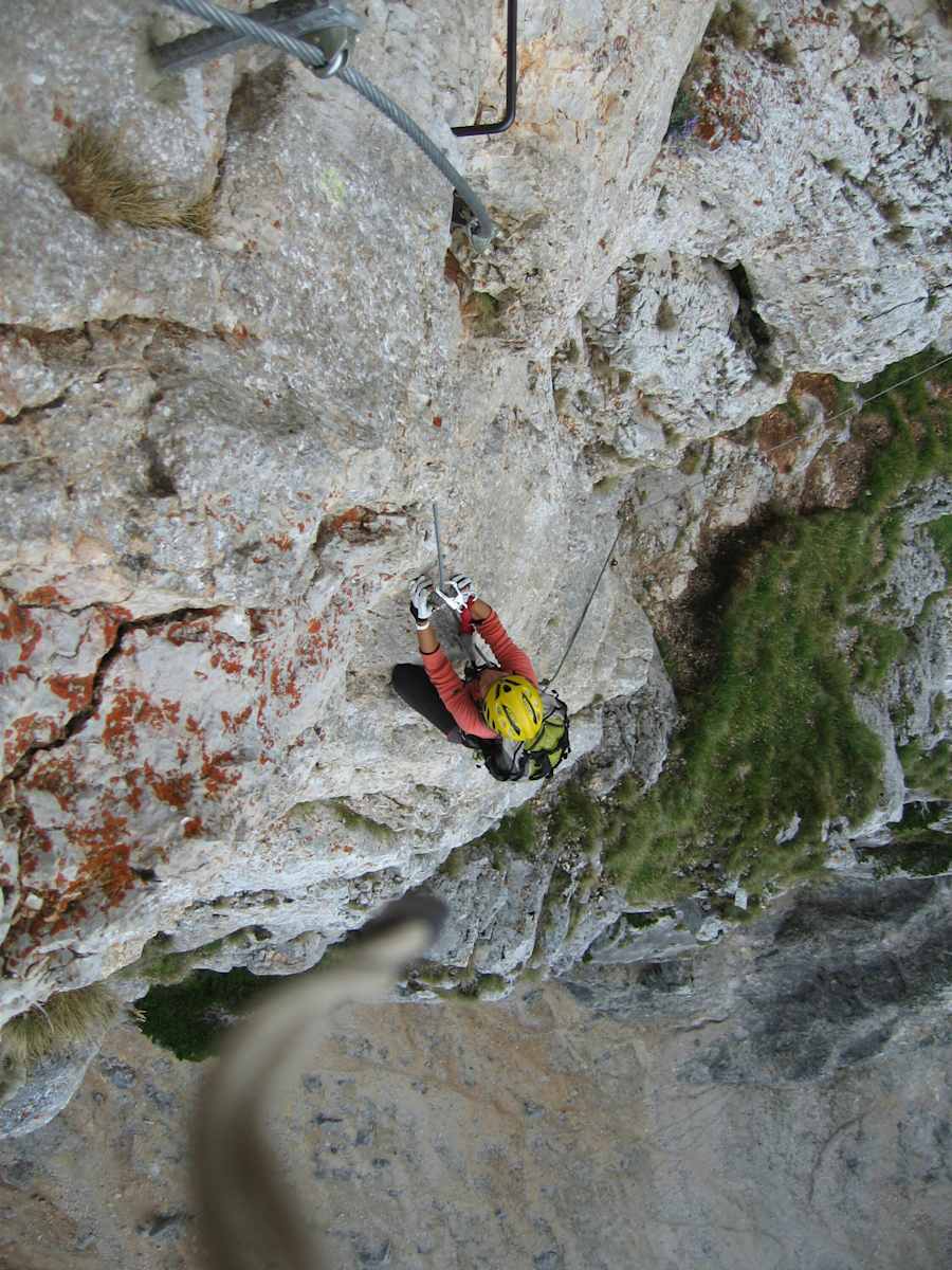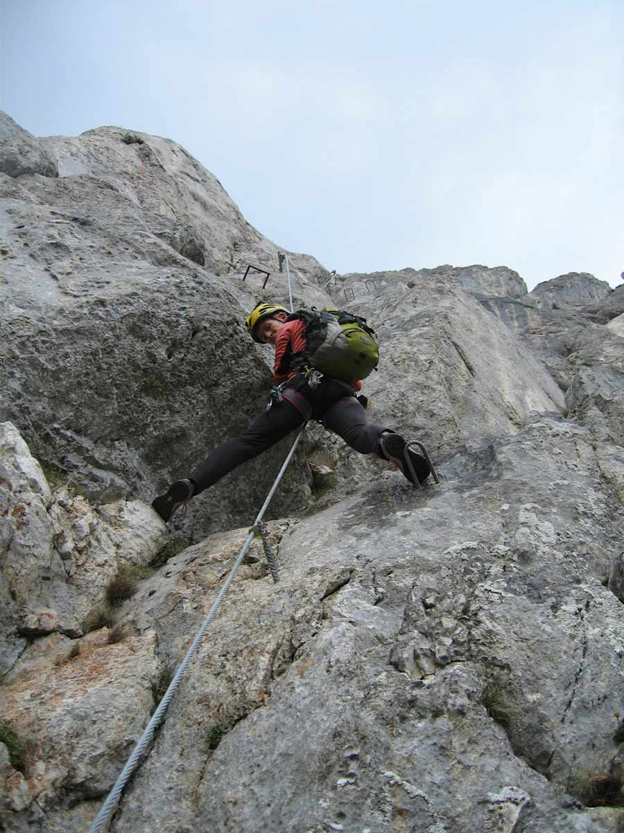 Steinschlaggefahr im ersten Drittel des Klettersteiges.