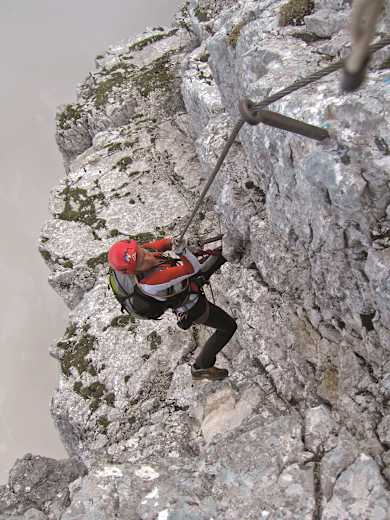 Extrem schwerer und sehr kraftraubender Klettersteig. Die Gesamtanforderung ist hoch. Nicht für Anfänger geeignet.