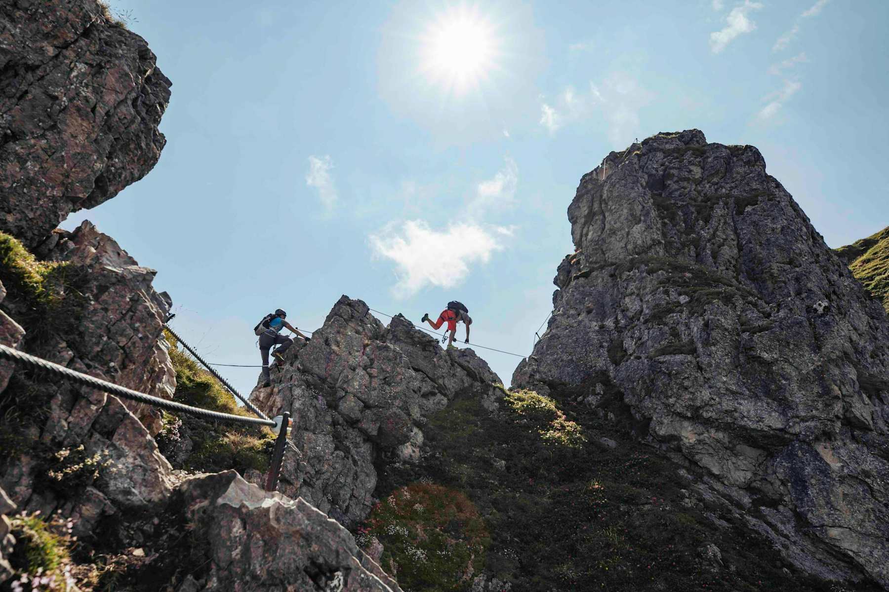 Der leichte Übungsklettersteig ist rund 100 m lang und eignet sich perfekt als Aufwärmrunde.