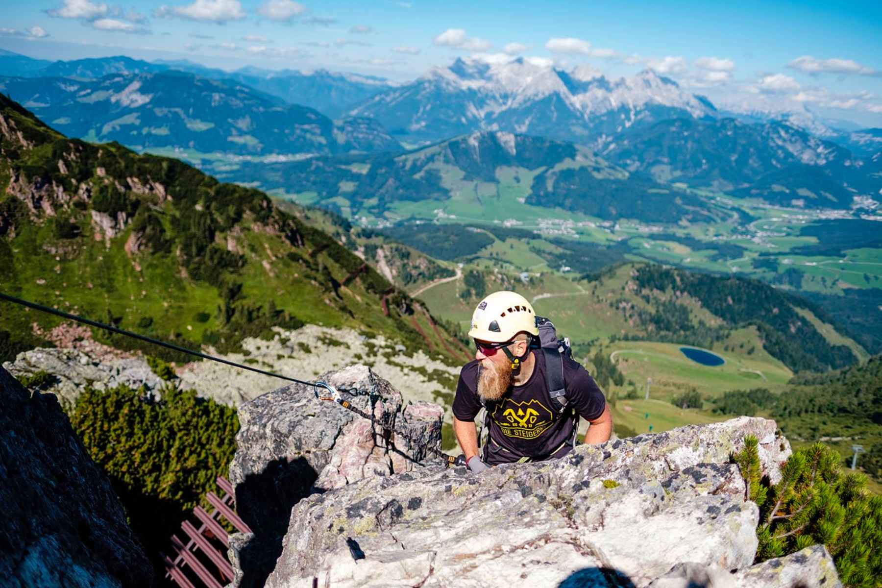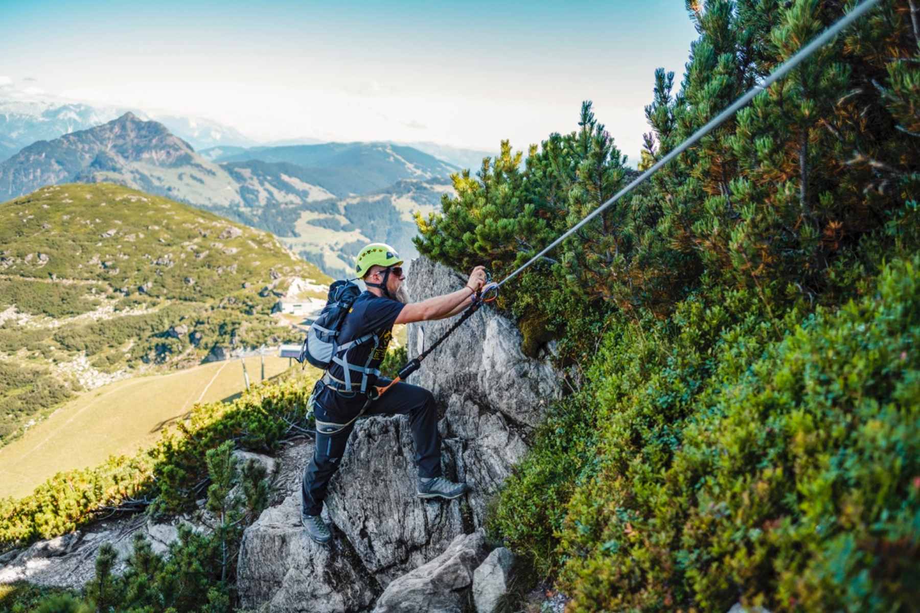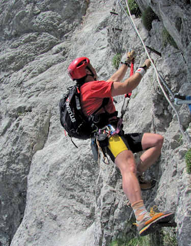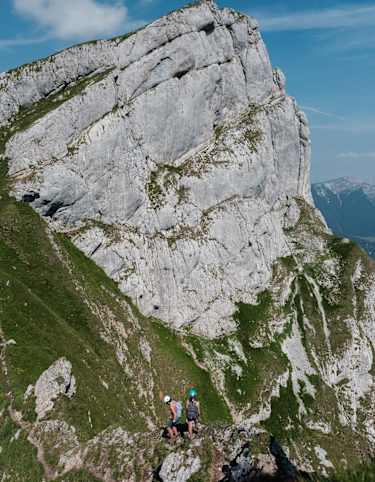 Komplette Klettersteigausrüstung inkl. Helm erforderlich.