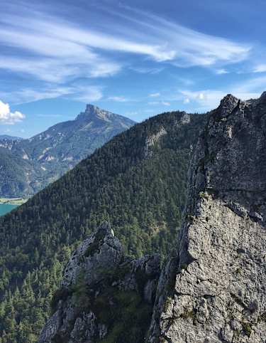 Zustieg 2: Von der Lärchfilzhochalm entlang der Forststraße Richtung Wildseeloderhaus. Nach einigen Kehren der Beschilderung links bis zum Klettersteigeinstieg folgen, circa 1 h.