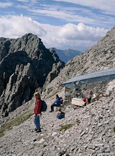 Am Vorgipfel steht seit dem Jahre 1882 die kleine Linderhütte. Sie erlaubt die Nächtigung, weist aber weder Wasser noch eine Feuerstelle auf. Foto: Walter Mair, Rother Bergverlag